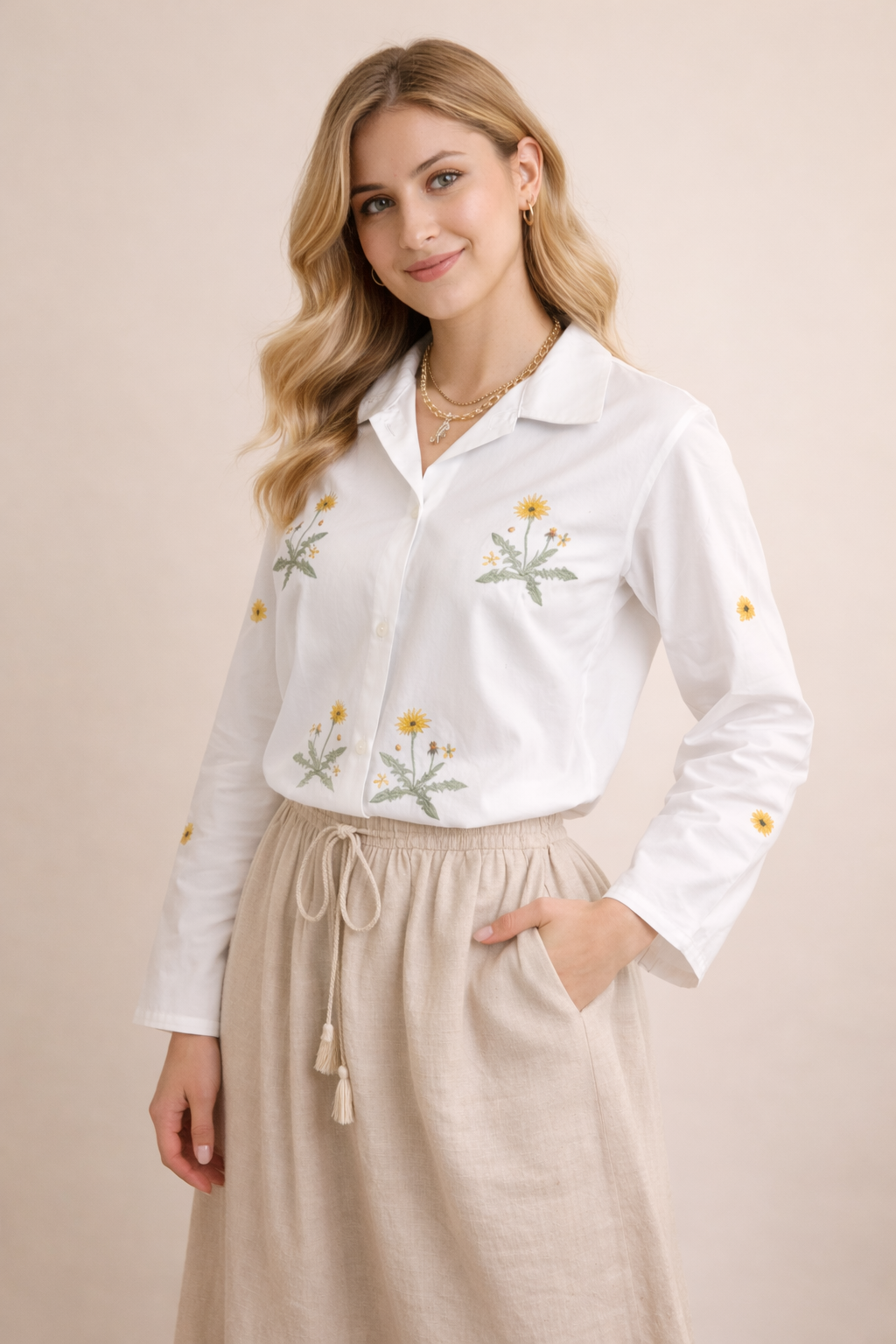Hand-embroidered florals and illustrated details